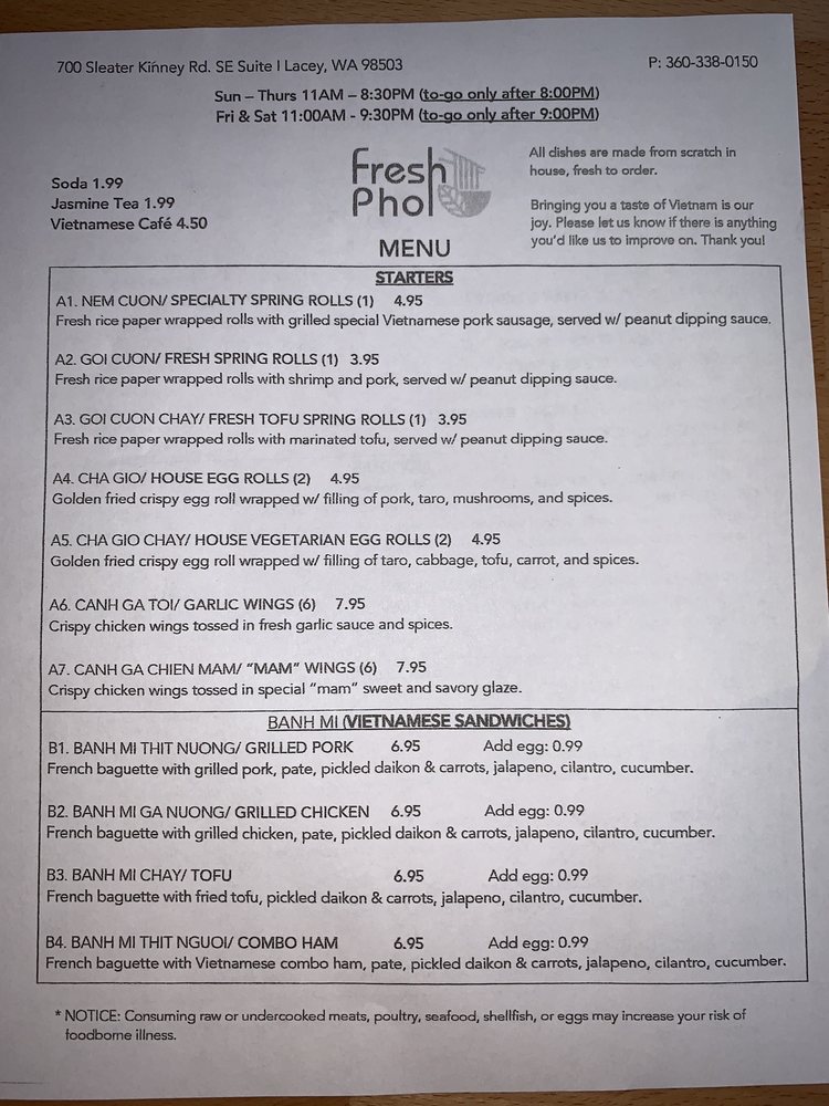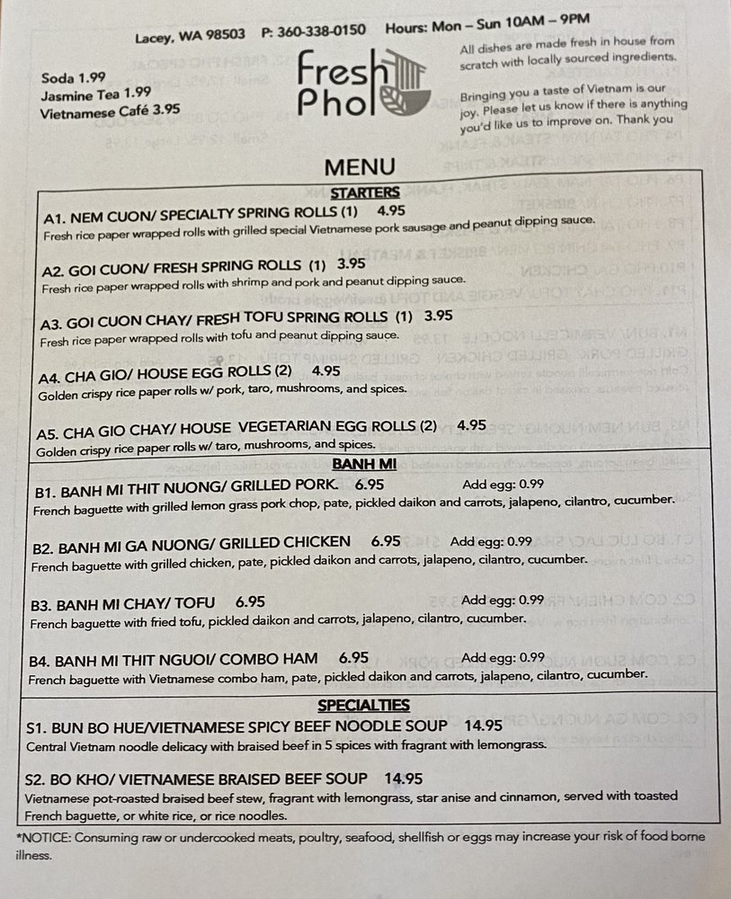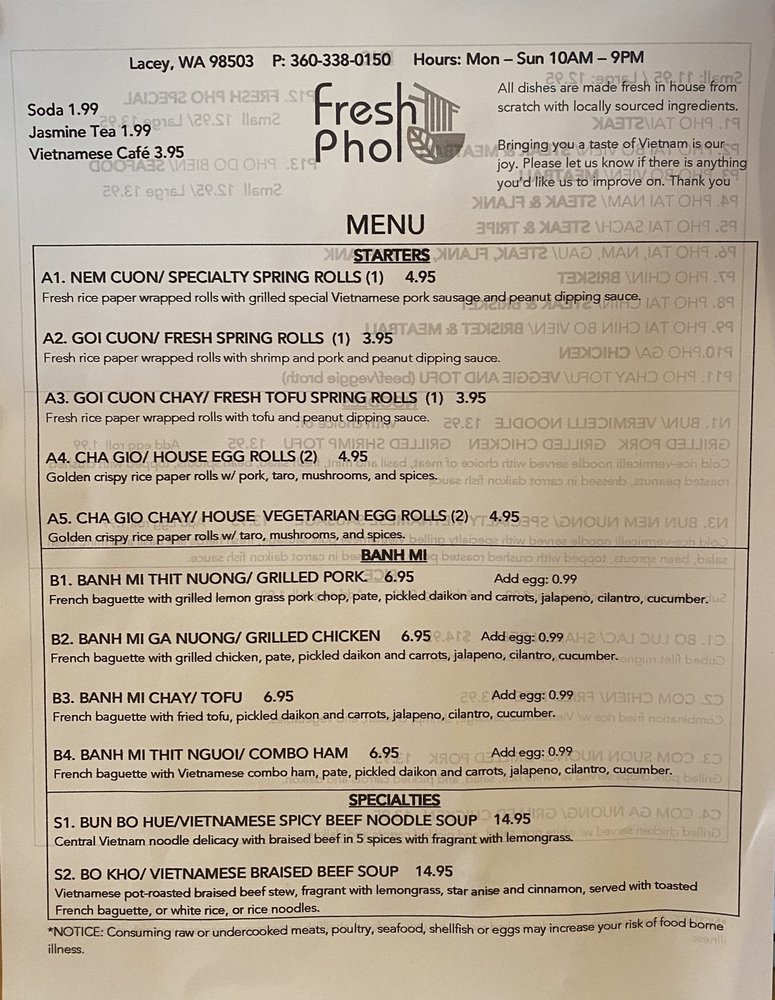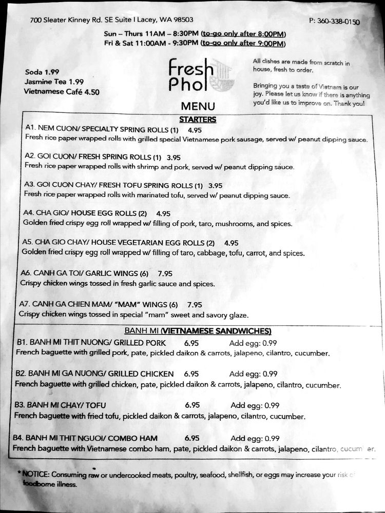 Welcome to Fresh Pho, your ultimate destination for authentic Vietnamese cuisine in Lacey, WA. Situated conveniently at 700 Sleater Kinney Rd SE, this charming eatery specializes in delightful soups and vibrant Bánh Mì sandwiches that encapsulate the heart of Vietnamese flavors.